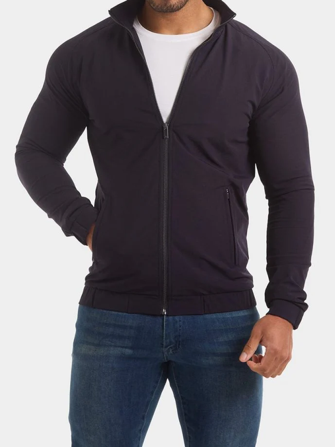 Navy Simple Daily Leisure Soft Bomber Jacket