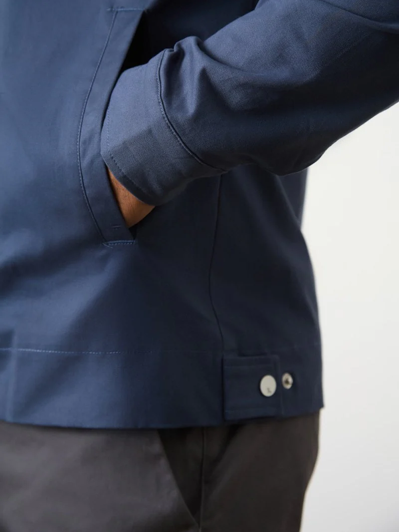 A modern refinement of a timeless silhouette, this Cotton Blend  Jacket blends effortless style with everyday versatility. Crafted from a luxuriously soft cotton blend, it features a sleek zip-through closure, functional pockets, and a fully lined interior with 4-way stretch for unrestricted movement. Adjustable cuffs and hem with metal snaps ensure a tailored fit, making it the perfect layering piece for transitional seasons.