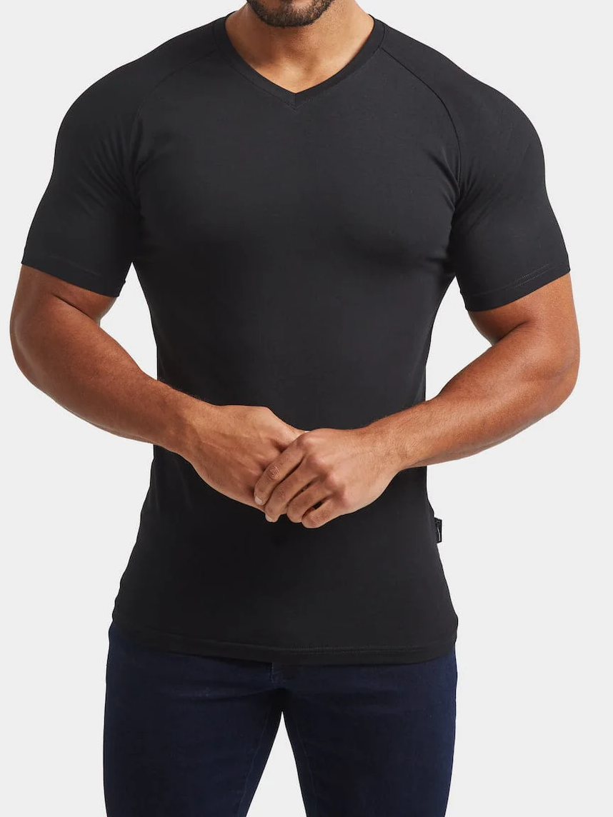 Black Soft Athletic V-Neck Tees