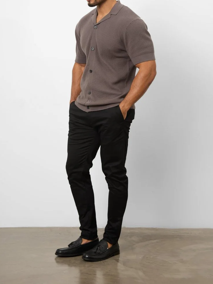 Effortlessly refined, the Knitted Cuban Collar Shirt is crafted from luxurious 100% cotton yarn for a supremely soft feel and breathable comfort. Its finely textured knit adds depth and sophistication, while the signature Cuban collar and button-down design strike the perfect balance between retro charm and modern style.