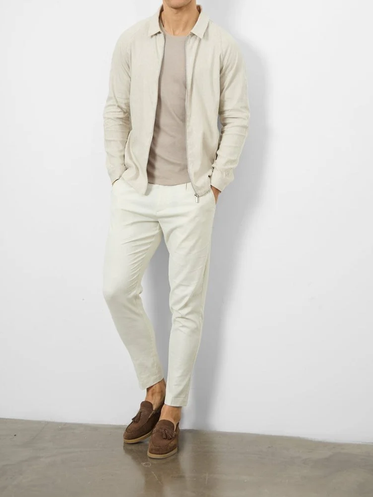 Crafted from naturally breathable linen with a refined texture, this jacket blends effortless style with modern versatility. The raglan sleeve construction offers a tailored yet relaxed fit, while the sleek zip-through closure, adjustable button cuffs, and drawcord hem allow for a customizable silhouette. Half-lined for a lightweight feel, it’s finished with practical front pockets, making it an elevated essential for refined everyday wear.