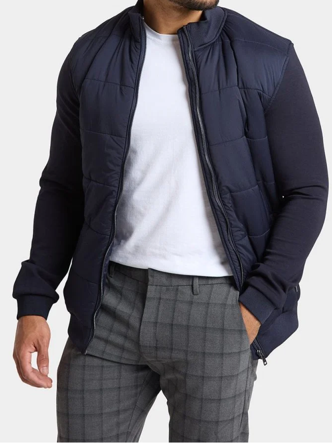 Elevate your style with the Quilted Hybrid Jacket, a harmonious blend of style and functionality. Crafted meticulously with a quilted front and back panel for a touch of sophistication, jersey sleeves and ribbed cuffs for contrast detailing. The 4-way stretch lining is added for optimal mobility without compromising on style.