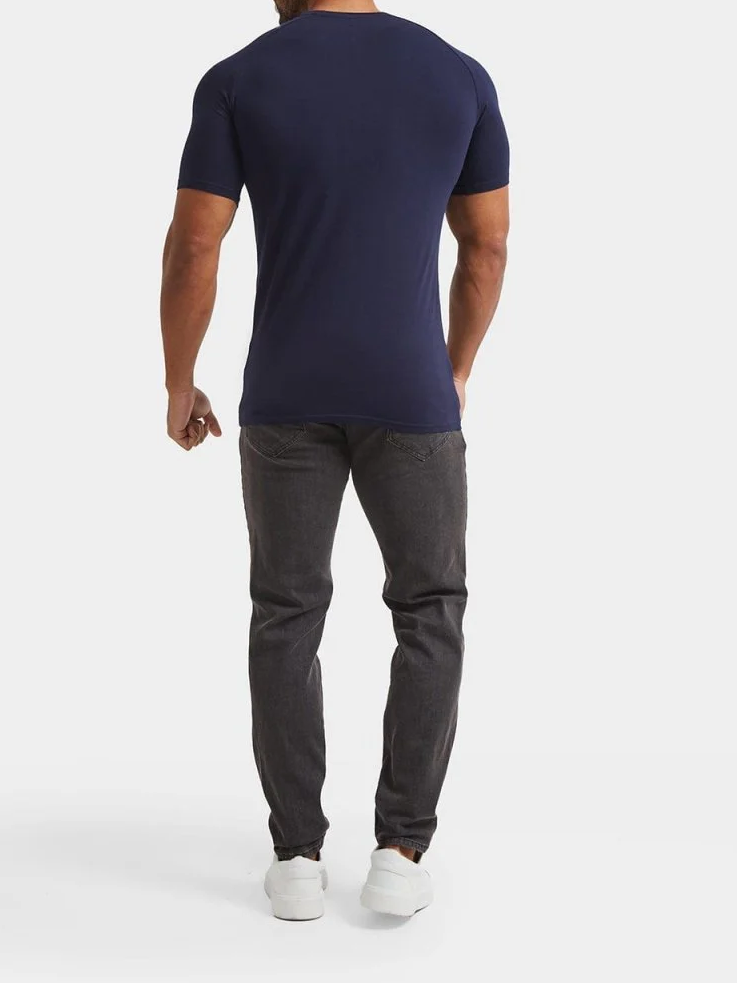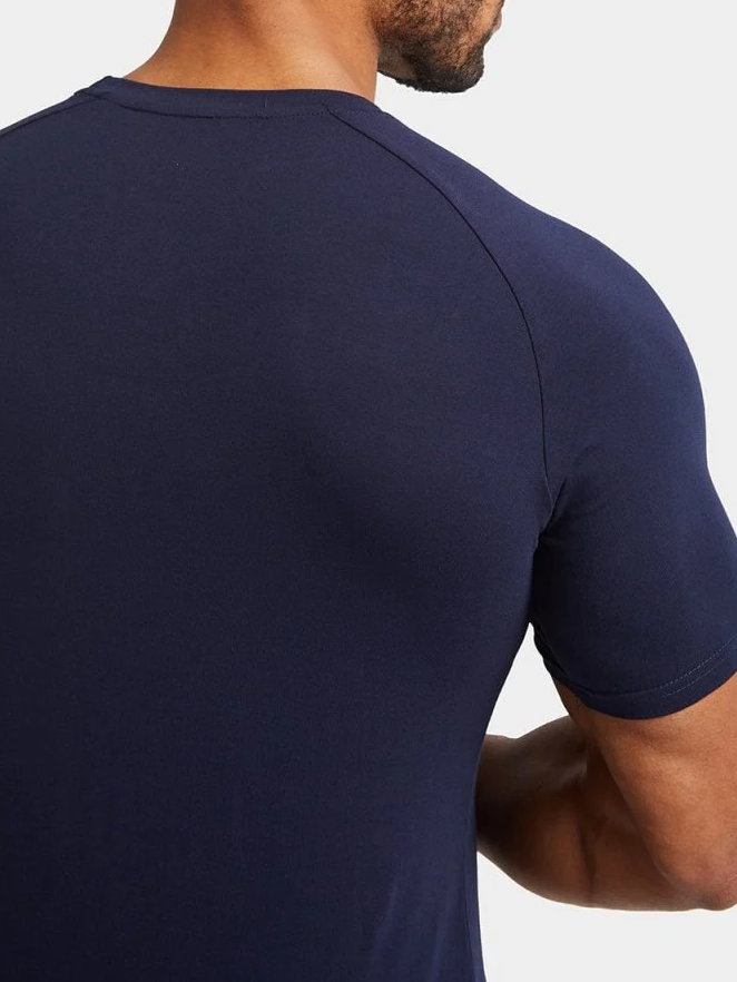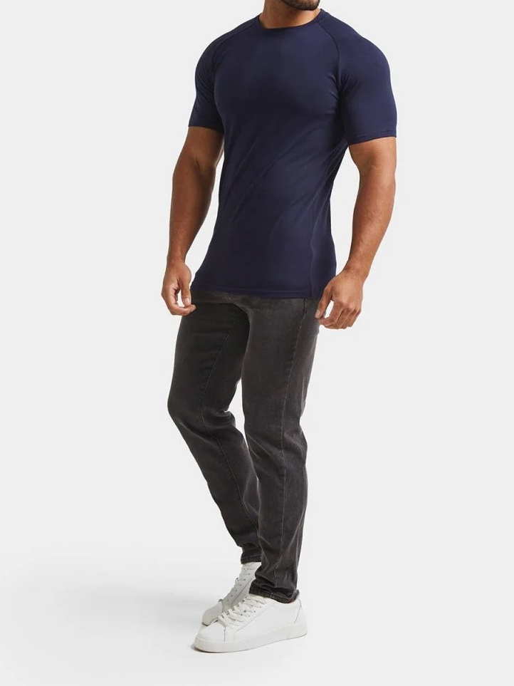 Elevate your wardrobe with our luxurious T-Shirt, meticulously designed to enhance your physique. It boasts a True Muscle Fit and our Signature Raglan-Cut sleeves, tailored to accentuate your physique with effortless style. Its minimalist design exudes refinement, while the premium stretch cotton ensures a superior wearing experience that combines comfort and style seamlessly.