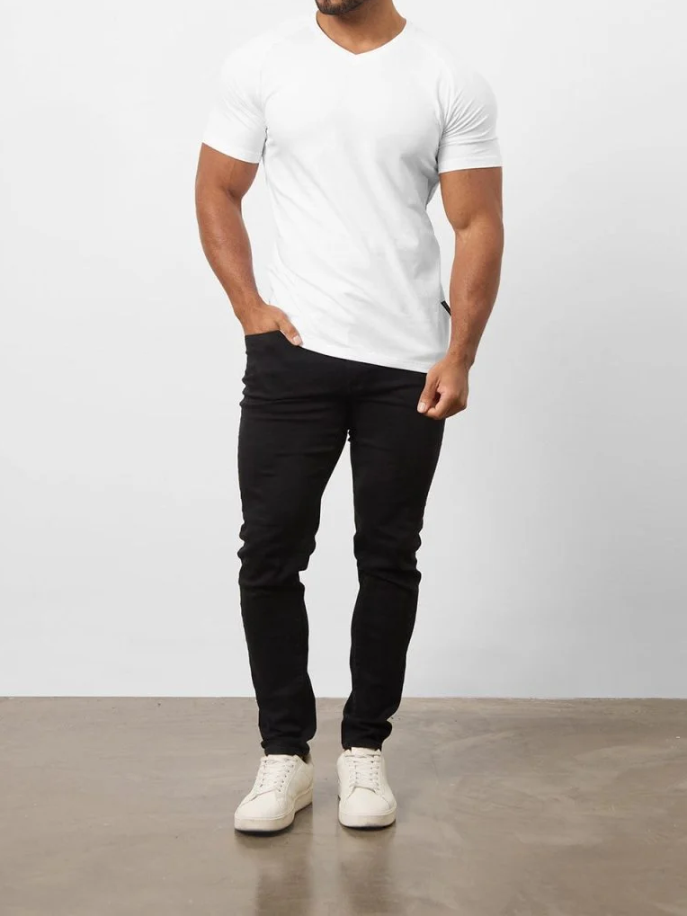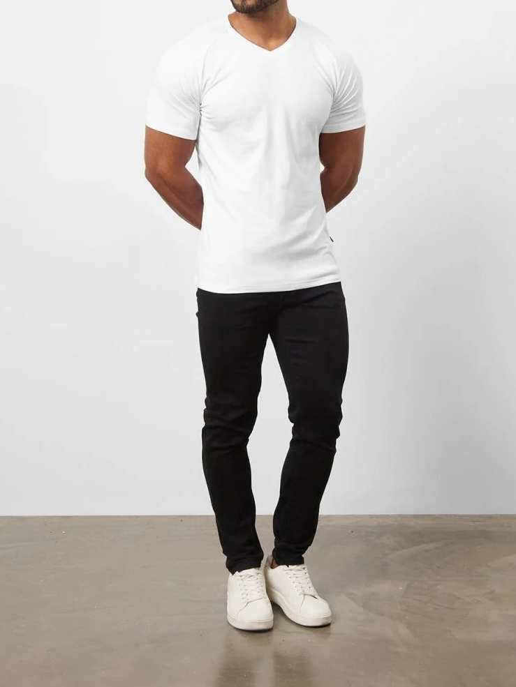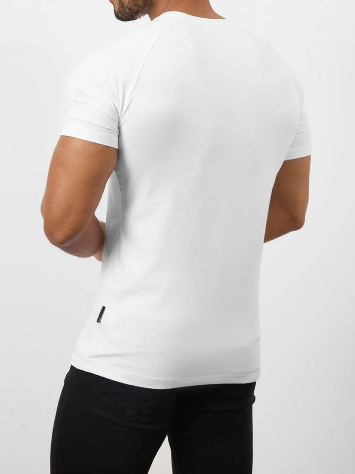 Elevate your wardrobe with our luxurious T-Shirt, meticulously designed to enhance your physique. It boasts a True Muscle Fit and our Signature Raglan-Cut sleeves, tailored to accentuate your physique with effortless style. Its minimalist design exudes refinement, while the premium stretch cotton ensures a superior wearing experience that combines comfort and style seamlessly.